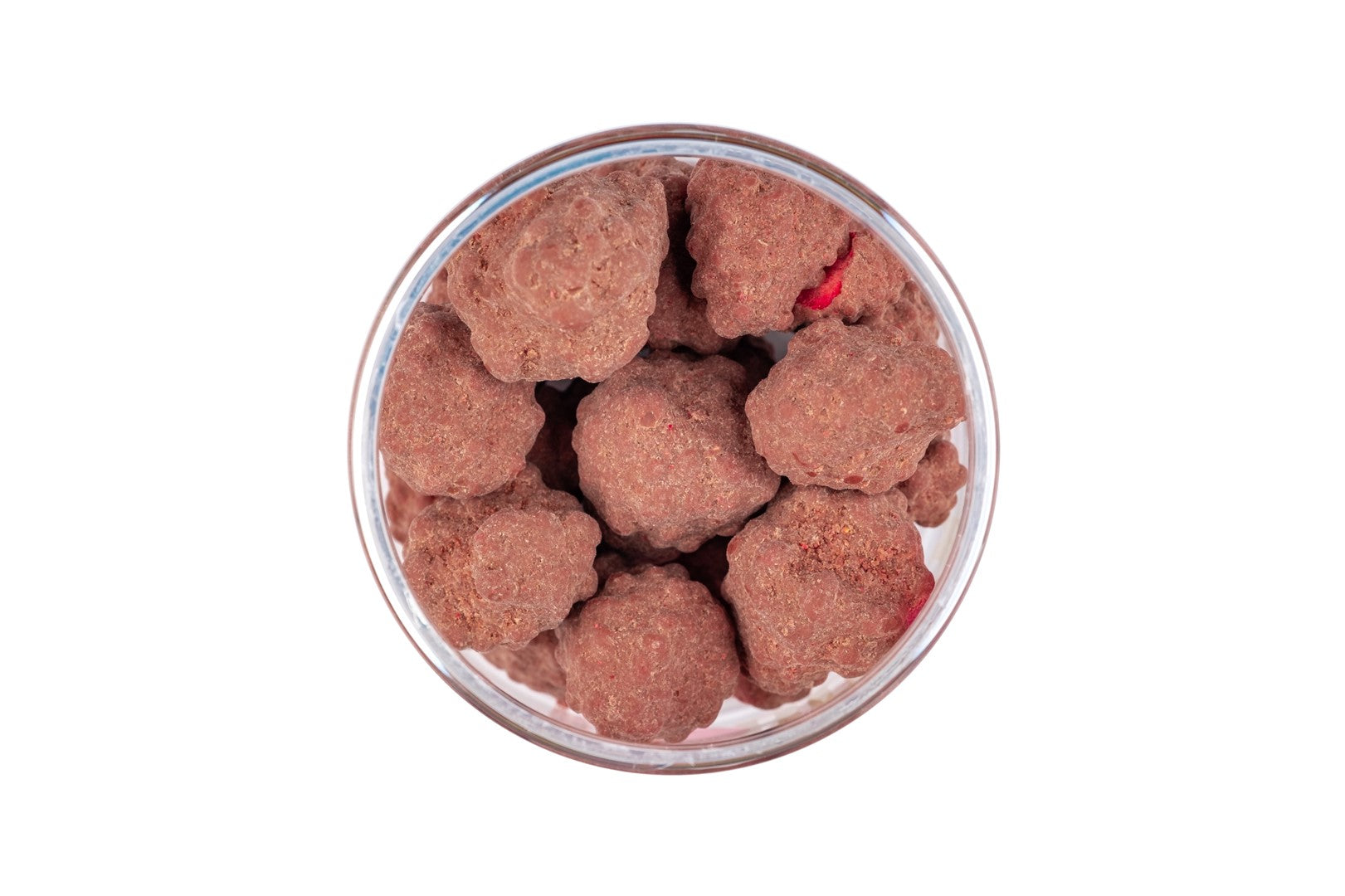Große, knackige Lyo-Erdbeeren, umhüllt von ehrlicher Milchschokolade. Dank der Lyophilisierung (Gefriertrocknung) behalten Erdbeeren ihren unverwechselbaren Geschmack, ihr Aroma und ihre Nährstoffe. Ein toller knuspriger Genuss, den Sie sich nicht entgehen lassen sollten.